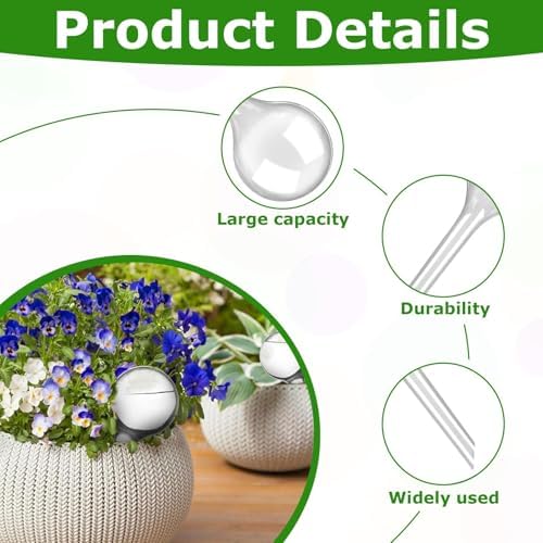 Entdecken Sie die Vorteile von automatischer Pflanzenbewässerung mit unseren 12 dekorativen PVC-Topfpflanzen-Bewässerungskugeln. Dieses innovative Bewässerungssystem ist ideal für Innen- und Außenpflanzen und macht das Gießen Ihrer grünen Freunde einfacher denn je. Keine mühevolle Pflege mehr – lassen Sie die selbstbewässernden Zwiebeln für Sie arbeiten!