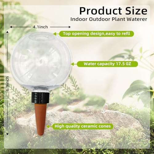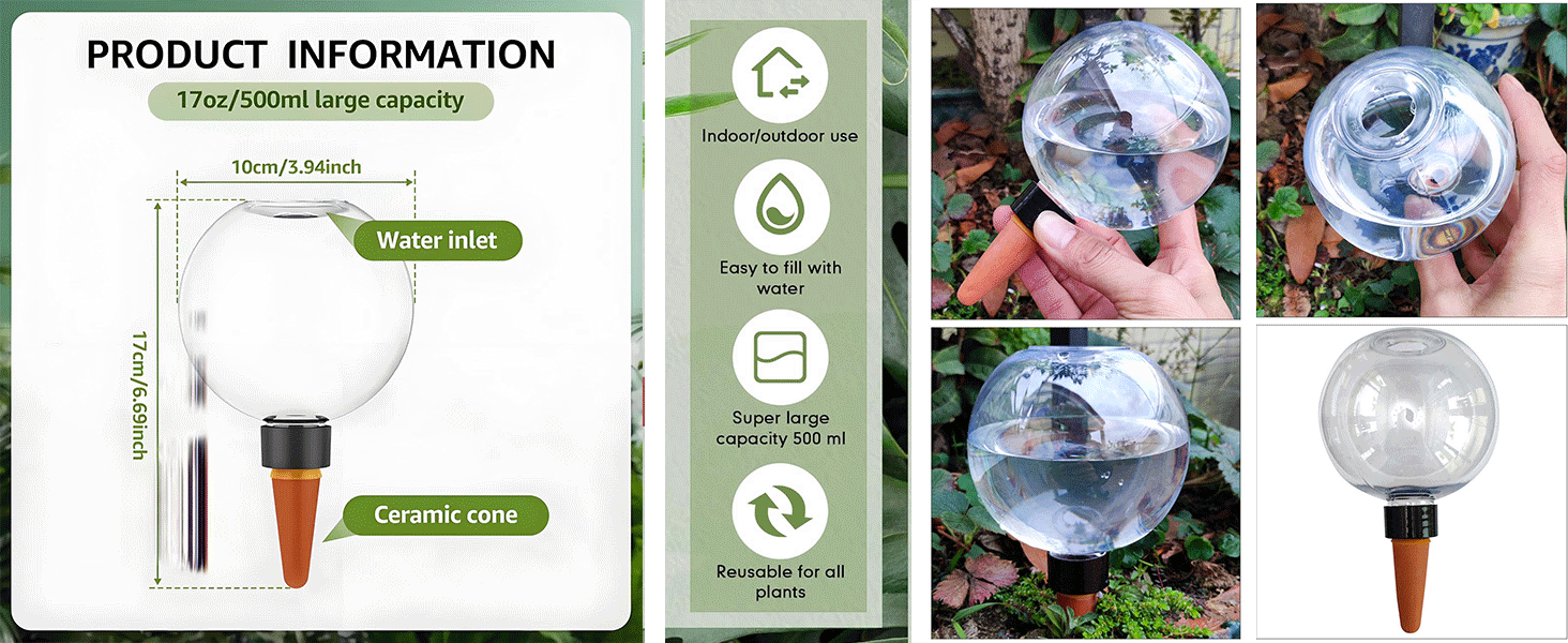 Unser Bewässerungsball bietet ein beeindruckendes Fassungsvermögen von 500 ml (17 oz), was das Gießen Ihrer Pflanzen zum Kinderspiel macht. Diese Funktion ist besonders vorteilhaft für vielbeschäftigte Pflanzenliebhaber, die nicht jeden Tag an das Gießen denken möchten. Mit diesem praktischen Tool sparen Sie Zeit und Platz, da Sie nicht ständig Wasser nachfüllen müssen.