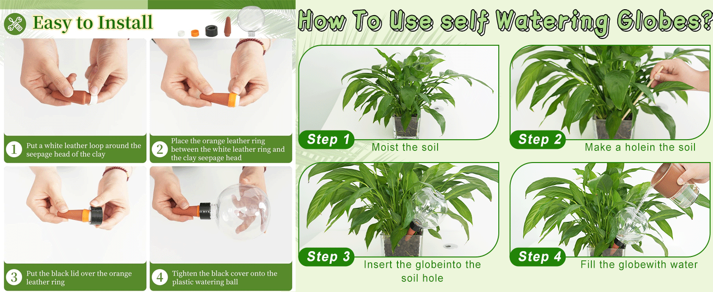 Die Handhabung des Bewässerungsballs ist denkbar einfach: Stecken Sie den Adapter und die Kugel in die Erde, und füllen Sie sie mit Wasser. Das Wasser fließt dann langsam und gleichmäßig durch den porösen Kegel in den Boden – eine effektive Methode, um Ihre Pflanzen stets optimal zu versorgen. Diese einfache Anwendung sorgt für bemerkenswerte Ergebnisse in der Pflanzenpflege.