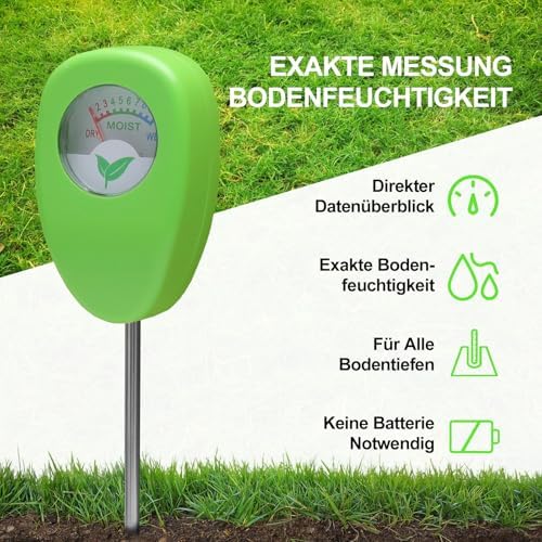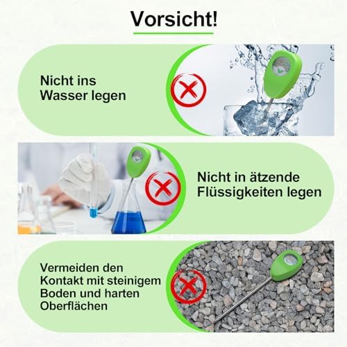 • Ohne Batterie – Sofort einsatzbereit: Stecken Sie die Sonde direkt in die Erde, keine Vorbereitungszeit nötig.