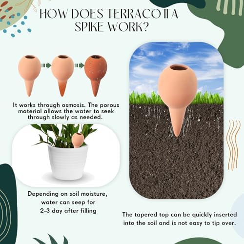 Die Installation der Tonkegel ist spielend einfach. Stecken Sie die Kügelchen einfach in die Erde nahe der Pflanze, füllen Sie sie mit Wasser und schon sind sie einsatzbereit. Es werden keine zusätzlichen Werkzeuge oder komplexen Voreinstellungen benötigt, was dieses Produkt für jeden ideal macht – selbst für Gartenneulinge. Bitte beachten Sie, dass diese Kegel nicht mit Flaschen verwendet werden sollten.