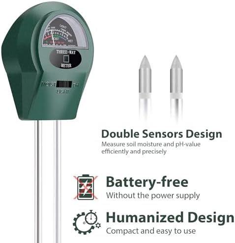 Unser innovatives Feuchtigkeitsmessgerät vereint drei wesentliche Funktionen in einem Gerät: die Messung der Bodenfeuchtigkeit, des pH-Wertes und der Sonnenlichtintensität. Diese vielseitige Anwendung ermöglicht es Ihnen, das Wohlbefinden Ihrer Pflanzen optimal zu überwachen und zu verbessern. Perfekt für Hobbygärtner und Pflanzenliebhaber, die ihre Pflanzen im besten Licht stehen lassen möchten.