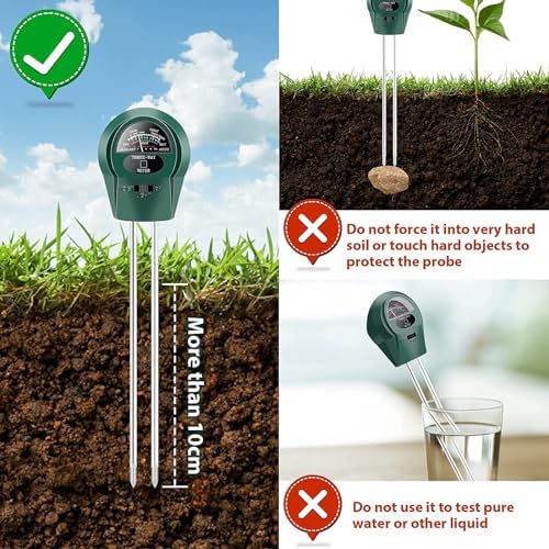 Die Anwendung könnte nicht einfacher sein! Eine klare Anleitung liegt bei. Vor dem Testen des pH-Wertes sollten Sie den Boden wässern. Stellen Sie sicher, dass der Tester mindestens 10 Minuten im Boden bleibt, um die genauesten Messwerte zu erhalten. So können Sie sicher sein, dass Sie alle relevanten Informationen zur Pflege Ihrer Pflanzen erhalten.