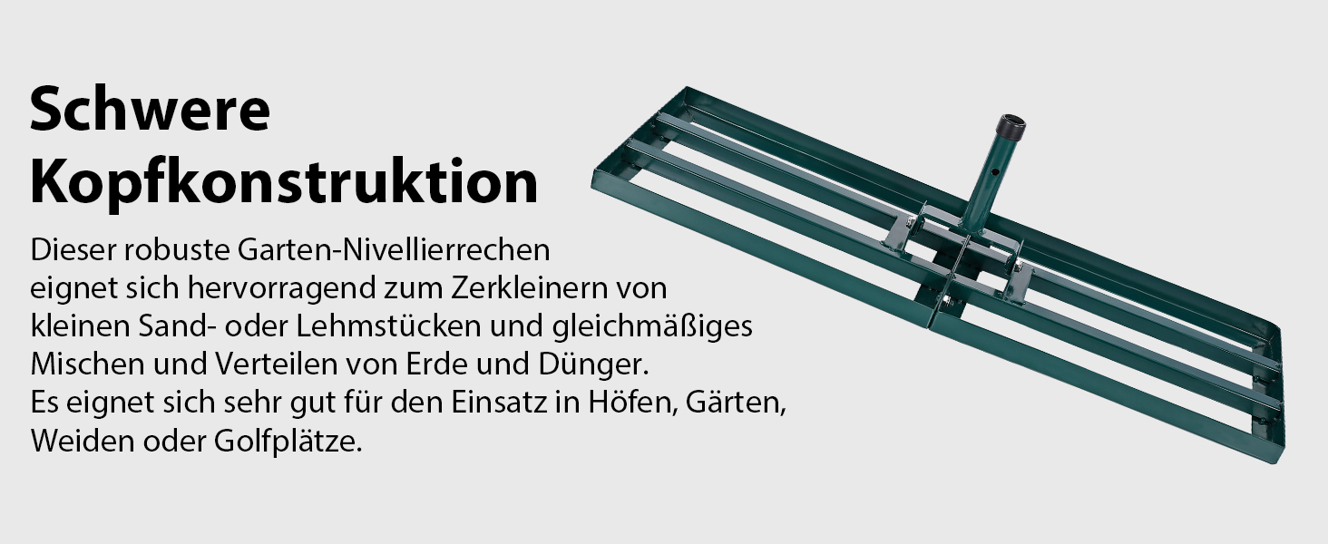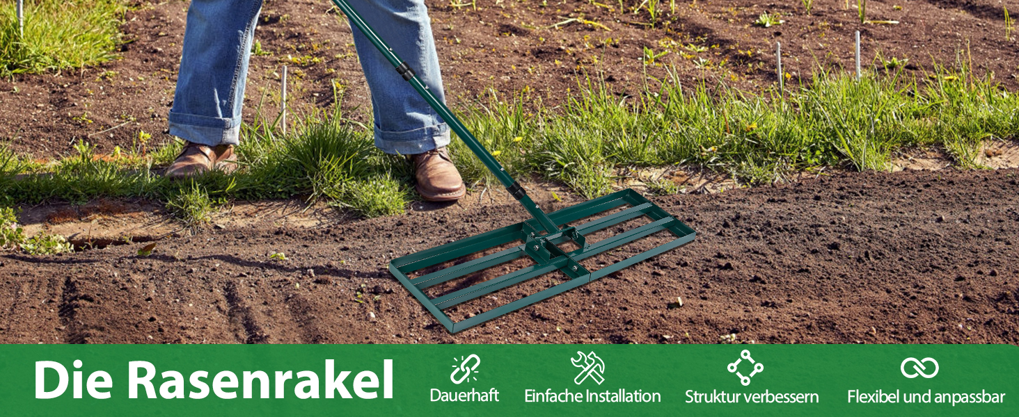 • Unverzichtbares Werkzeug für die Rasenpflege: Unterstützt bei der Einebnung von Erde, Sand und Kompost für gepflegte Rasenflächen.